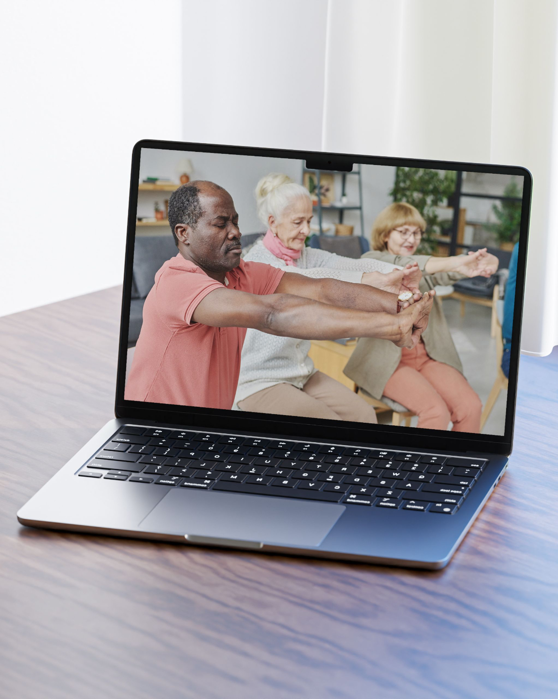 Enjoy a thoughtfully designed collection of easy-to-follow video sessions that guide you through supported movement—all from the support of a chair.